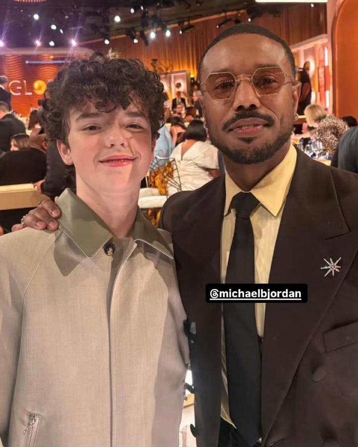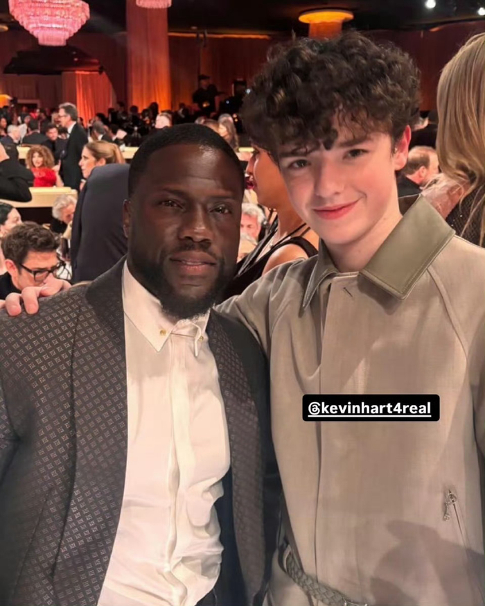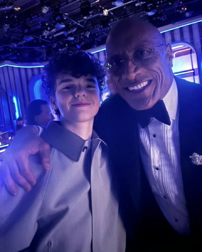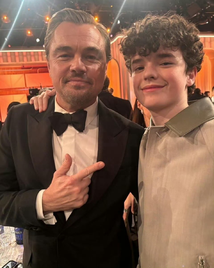 欧文·库珀在金球奖颁奖典礼上追星,顺便合个影。